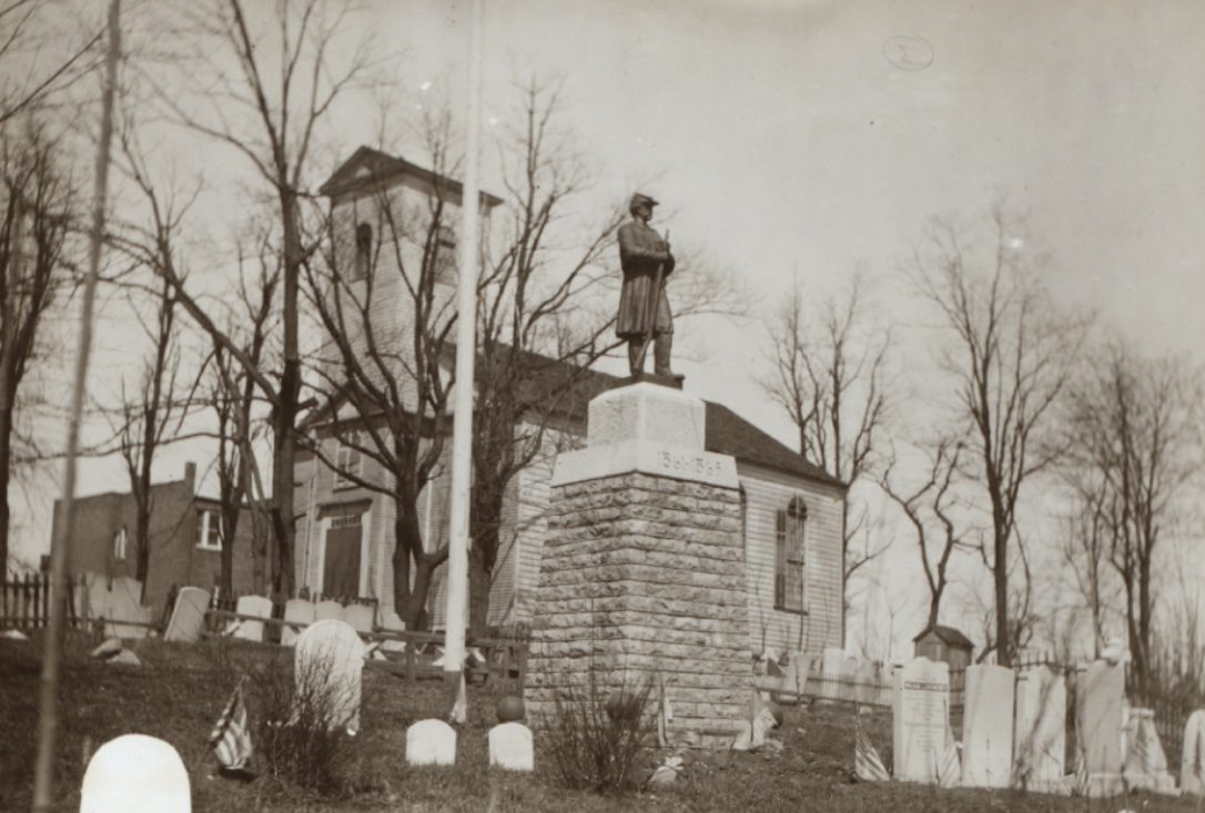 На территории кладбища был установлен памятник в виде бронзовой фигуры солдата армии Союза, размещенной на постаменте. Также там появились три полевых орудия XIX века. Впоследствии статуя получила повреждения из-за непогоды и актов вандализма, и примерно в 1950 году ее демонтировали. Несколько лет она хранилась в неизвестном месте, пока 18 ноября 1959 не была восстановлена и возвращена. За дело взялся Комитет памяти Гражданской войны, инициировавший реставрацию. Статую хранил Берт Сек, сотрудник городского Департамента общественных работ, ветеран мировой войны и историк. Он передал ее в мастерскую медника Эндрю Беца в Йонкерсе, где была проведена реставрация.