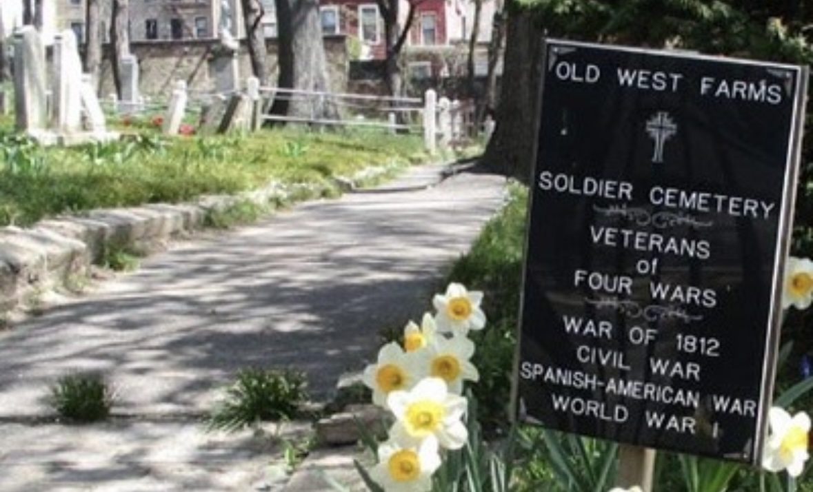 Рядом с Бронкским зоопарком среди массивных зданий жилого комплекса Ламберт-Хаус можно заметить странный объект: старый, поврежденный металлический знак с тусклой надписью — «Военное кладбище Вест Фармс, памятник Бронкса, один квартал на запад». Само кладбище расположено на углу Восточной 180-й улицы и Брайант-авеню. Здесь нашли последнее пристанище 40 ветеранов — участников войны 1812 года, Гражданской, Испано-американской и Первой мировой войн. Однако солдаты — это лишь часть богатой истории этого кладбища, которое функционировало как общественное место захоронения еще с начала XIX века. Подробнее — дальше на bronx-yes.com