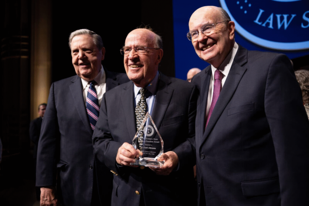 9 июня 2022 года в Солт-Лейк-Сити Абрамс был награжден премией Томаса Кейна от Юридического общества Дж. Рубена Кларка за свои лидерские усилия в содействии еврейско-христианскому диалогу.